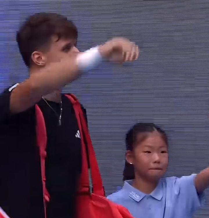 王大雷感慨万分地说:“平时都是我牵着别人的孩子入场,今天,看到她与优秀的网球选手并肩而行,这种奇妙的感觉,真是难以言表!”